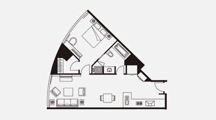 行政一居室公寓的面积为 83-91 平方米,设计精美,集豪华与便利于一体,公寓内采用现代化装饰风格,设有一个豪华卧室、一个独立卫浴、一个装饰时尚的起居区和一个设施齐全的小厨房,非常适合个人商务人士或旅行的情侣入住。