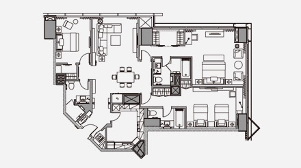 顶层贵宾套房的面积为 424 平方米,设计精美,集豪华与便利于一体,处处尽显奢华,公寓内设有三个豪华卧室、三个浴室、一个装饰时尚的起居区和一个独立的就餐区(带有一张适合六人就餐的餐桌),非常适合一起出差的几位商务伙伴或四人家庭入住。