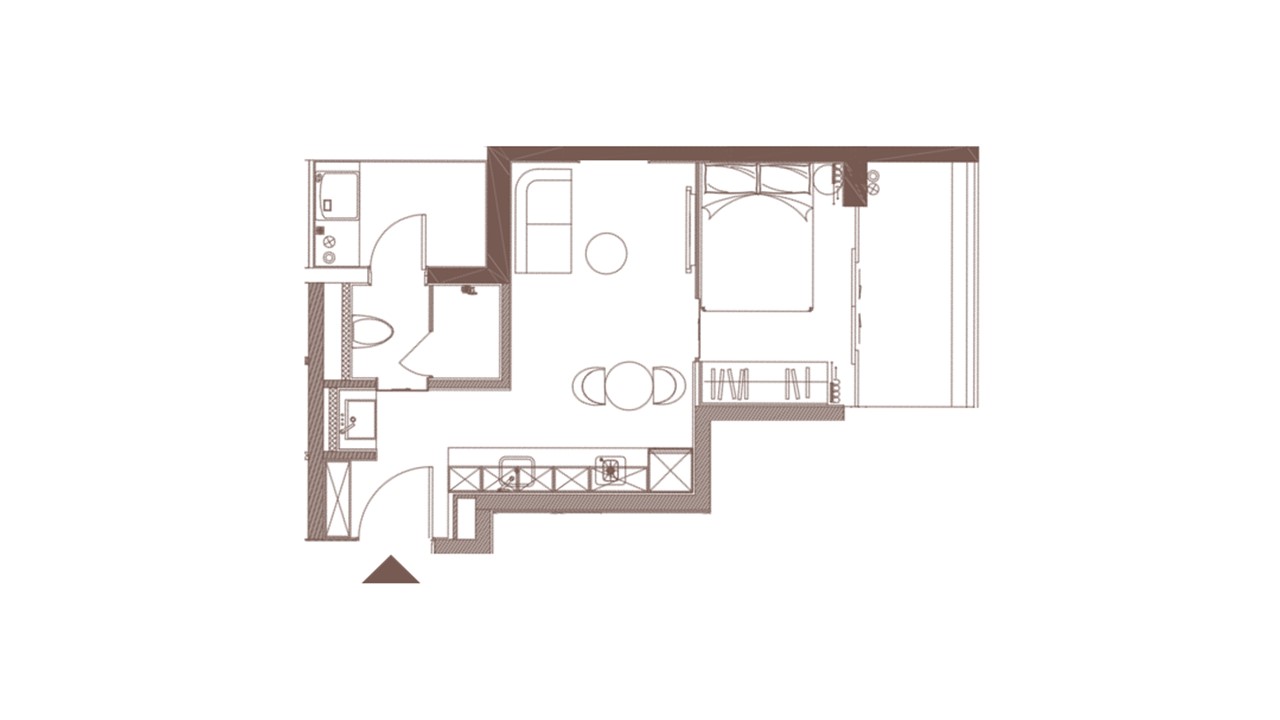 户型紧凑简约,各功能间各有各天地。开放式厨房,既保证空间感又凸显布局合理,明亮空间施展大厨艺。用餐区与厨房咫尺距离,动线便利自如。方正的卫生间,让沐浴也变成一种享受。私密独立的卧室,整夜无扰入眠。
