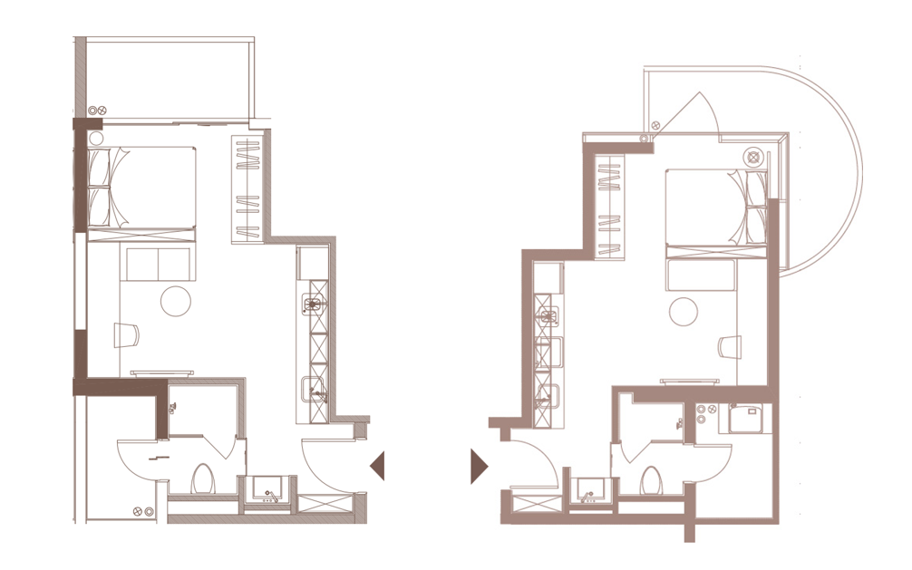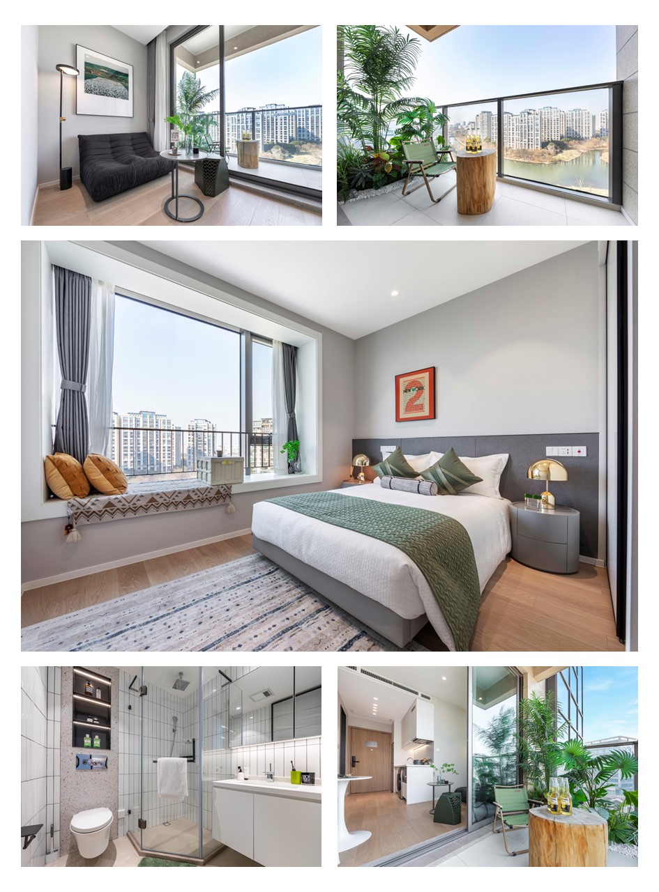 一房公寓格局紧凑且实用率高,卧室设计为豪华套间,配备独立宽敞卫浴,更显奢华生活。房内自带湖景飘窗,品质生活悠然自得。亦可在阳台与好友赏景共饮,居家生活处处有景。设备齐全的开放式厨房,同时还配有微波炉,让住客轻松烹饪美味而无后顾之忧。独立控温器的空调,让您感受家一般的轻松与温暖。