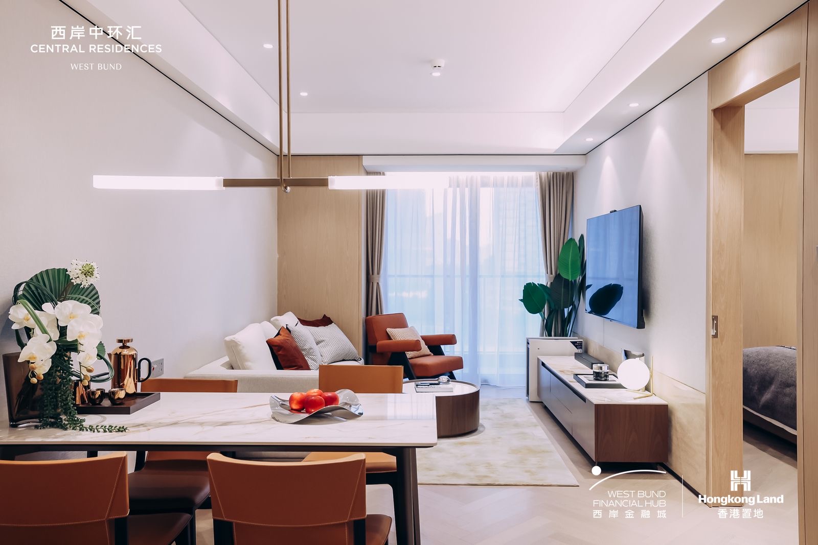 西岸中环汇服务式公寓由香港置地集团打造。一期的设计语言更偏向长期居住所需的稳定、耐看与舒适。整体风格简洁现代,空间比例克制,强调采光、视野与功能的平衡。部分房型配置户外阳台或露台,面向徐汇滨江,一线江景无遮挡——这是徐汇滨江段极为稀缺的居住体验。