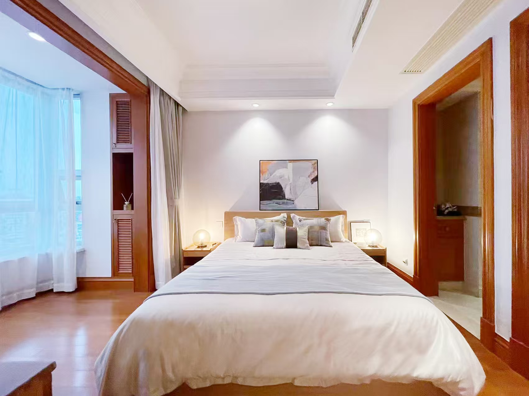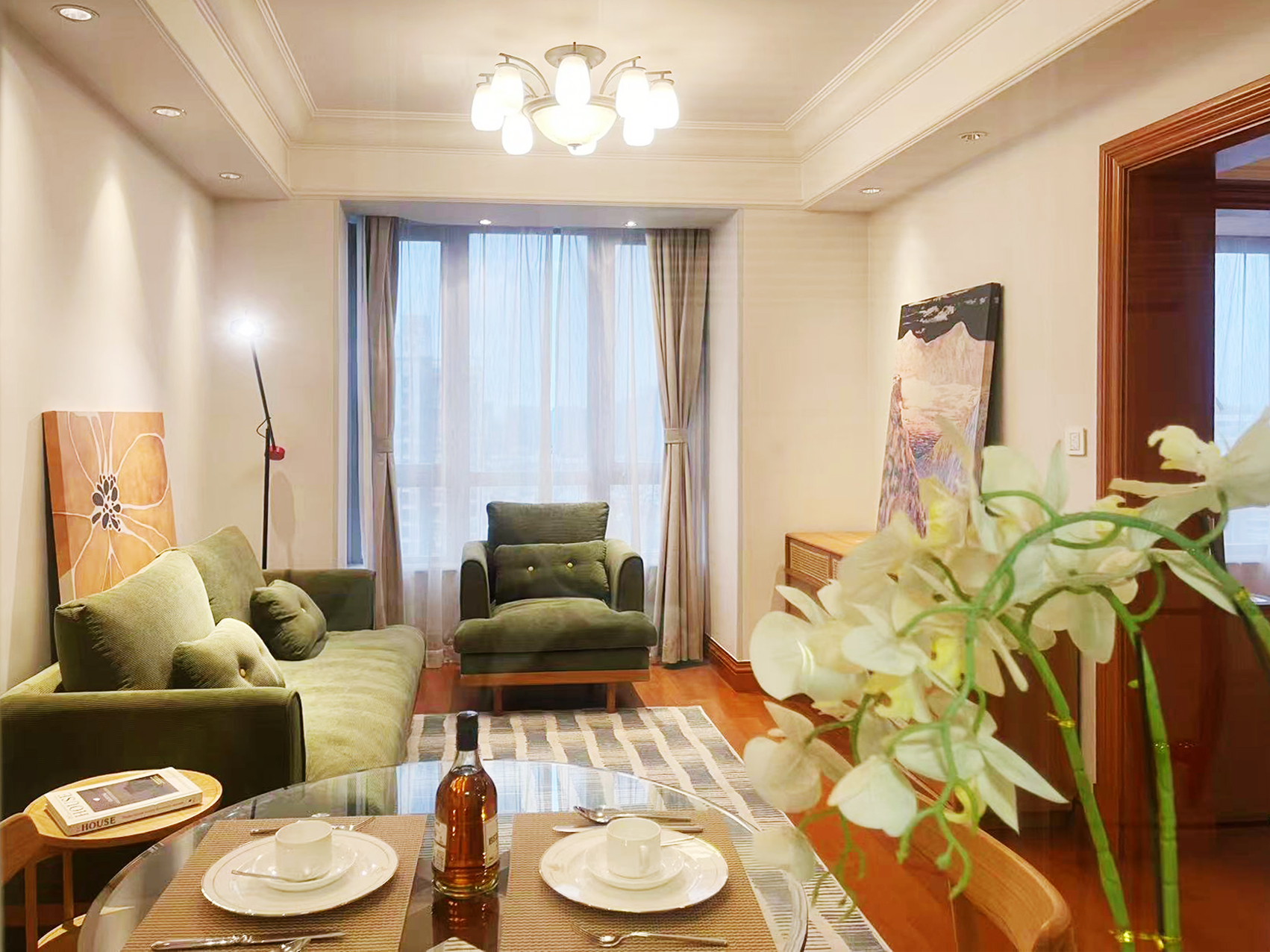 公寓内部设计以经典风格为主,空间布局实用,客厅、餐厅与卧室分区明确。对于需要大面积居住空间的家庭型租客来说,这类户型在徐汇区服务式公寓市场中具有一定优势。