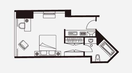 行政一居室公寓的面积为 83-91 平方米,设计精美,集豪华与便利于一体,公寓内采用现代化装饰风格,设有一个豪华卧室、一个独立卫浴、一个装饰时尚的起居区和一个设施齐全的小厨房,非常适合个人商务人士或旅行的情侣入住。