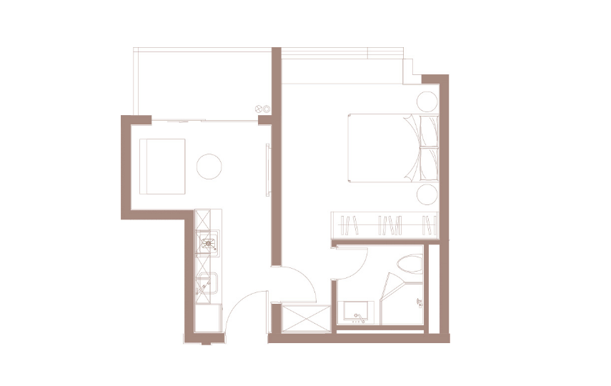 户型紧凑简约,各功能间各有各天地。开放式厨房,既保证空间感又凸显布局合理,明亮空间施展大厨艺。用餐区与厨房咫尺距离,动线便利自如。方正的卫生间,让沐浴也变成一种享受。私密独立的卧室,整夜无扰入眠。