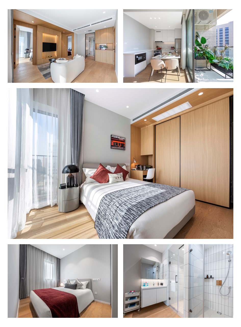 多种户型满足住客的不同入住需求。每间客房内均配备了现代化的生活设施,独立用餐区以及卫浴空间。遍布公寓的24小时安保系统可以确保您和家人的居住环境安全无忧。