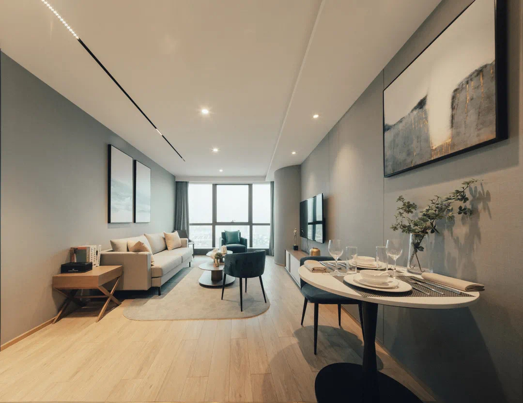长河国际公寓以 意式简约设计风格 为整体基调,强调空间比例、自然采光与居住质感。
