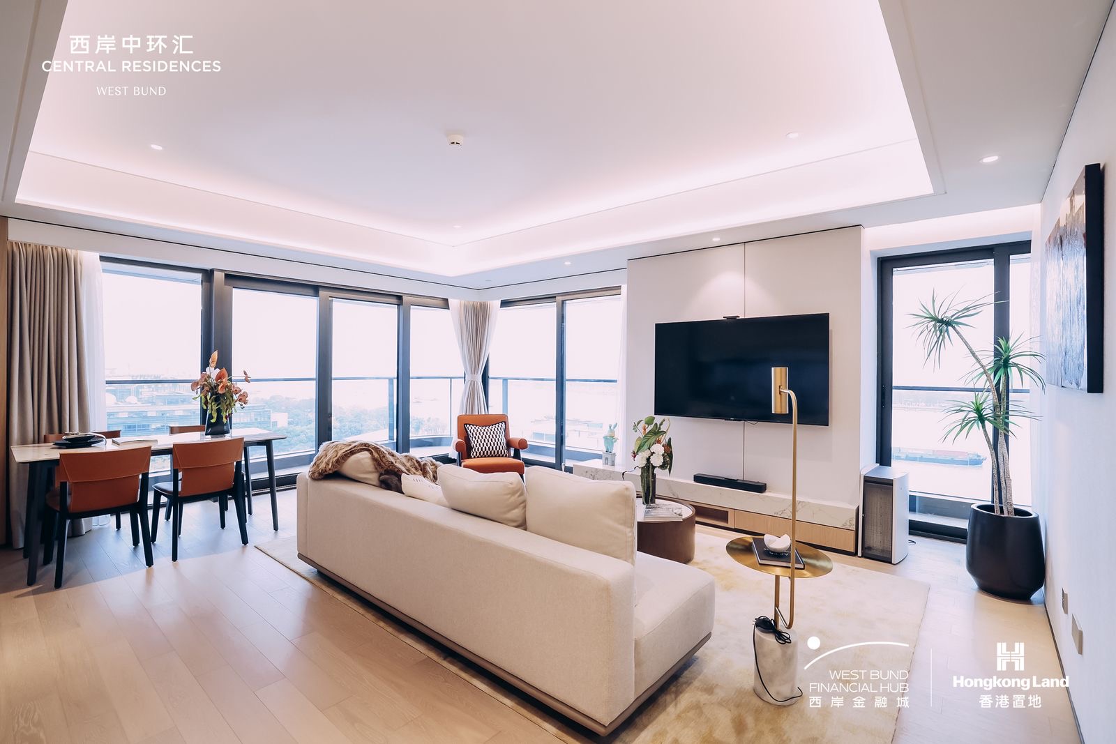 西岸中环汇服务式公寓由香港置地集团打造。一期的设计语言更偏向长期居住所需的稳定、耐看与舒适。整体风格简洁现代,空间比例克制,强调采光、视野与功能的平衡。部分房型配置户外阳台或露台,面向徐汇滨江,一线江景无遮挡——这是徐汇滨江段极为稀缺的居住体验。